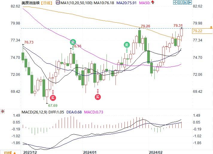 美原油连续合约收涨1.17美元/桶,涨幅1.50%,收报79.22美元/桶。