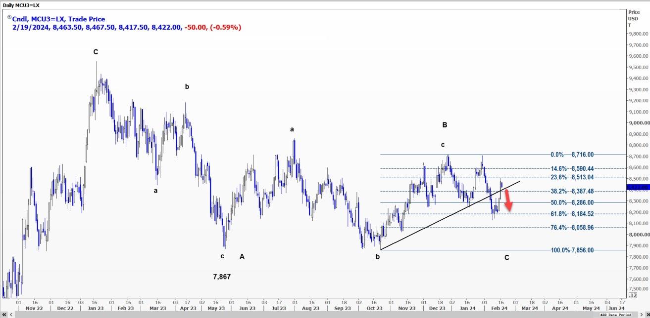 LME铜本周可能会测试每吨8387美元的支撑位,跌破该支撑位可能会打开通往8185-8286美元区间的道路。