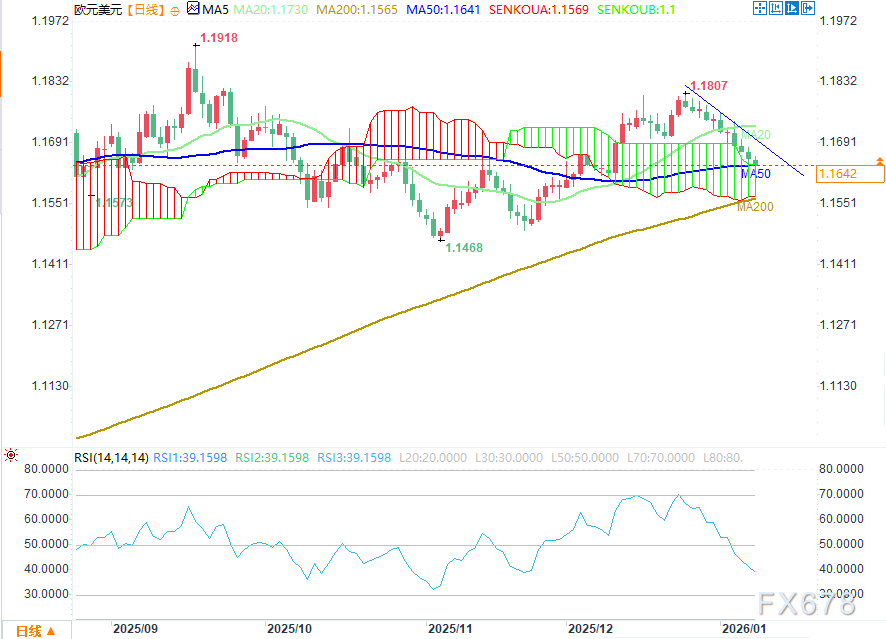 欧元兑美元短期走势延续偏弱态势,当前汇率在1.16-1.17区间震荡,最近交易日徘徊于1.1650-1.1690附近,较去年底高点有所回落,但尚未跌破关键支撑位。值得注意的是,当前市场波动的核心驱动并非单纯的经济数据或关税事件,而是持续发酵的地缘政治风险,这一因素已成为触发市场风险厌恶情绪的主导力量。主流机构普遍认为,地缘政治不确定性是拖累欧元、强化美元避险属性的核心逻辑,尤其是欧元区作为“地缘负担最重”的地区,多重外部冲击叠加使其缺乏独立上涨动能。