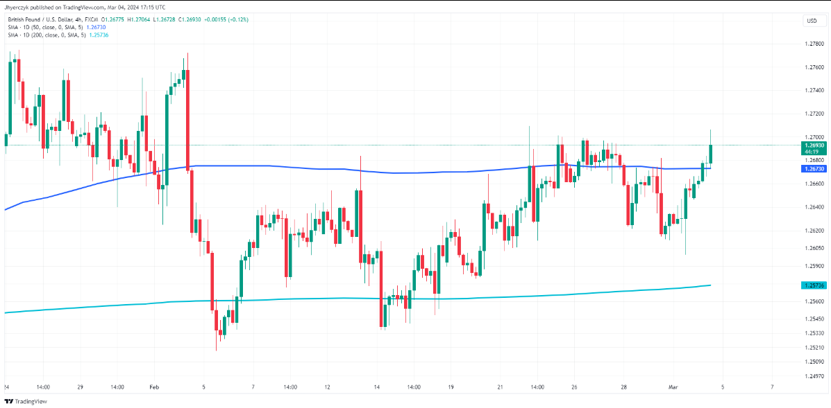 从技术上讲,当买家果断推动外汇货币对突破50日移动均线1.2673时,英镑/美元价格飙升,这是新的支撑。市场正在迅速逼近另一个潜在突破位1.2709。突破这一水平将使1.2772受到关注。