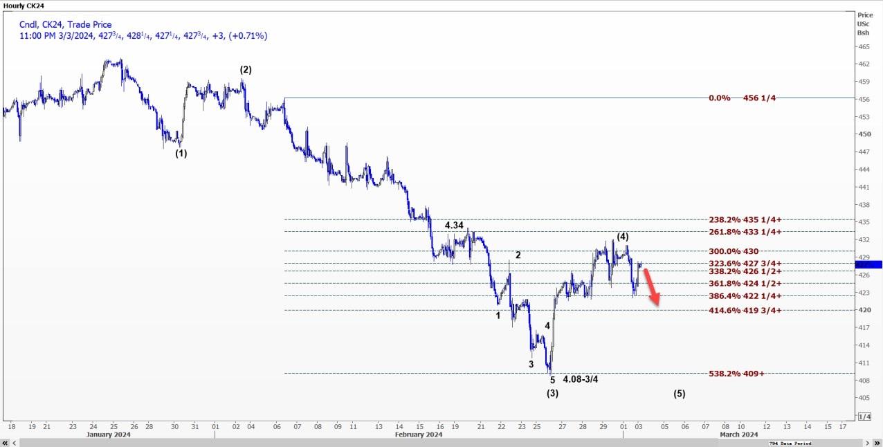 CBOT玉米CK24可能会重新测试4.2225美元的支撑位,因为它可能已经完成了从4.0875美元的反弹。