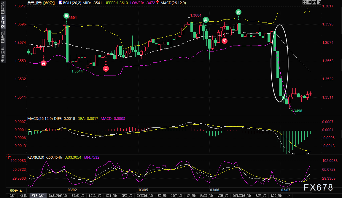 5. 市场反应:美元/加元短线下挫30点至1.35368,最低至1.35244。