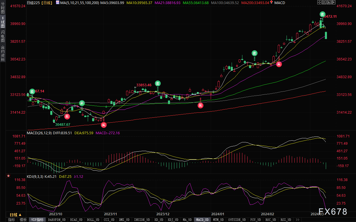 受科技股拖累,日本东证指数创下去年10月以来最大单日跌幅。日股芯片类股大幅下挫,这与上周五美国股市的人工智能相关股所面临的压力相呼应,当时英伟达下跌5.6%。截止13:15,日经225指数下跌2.95%,报38513点。