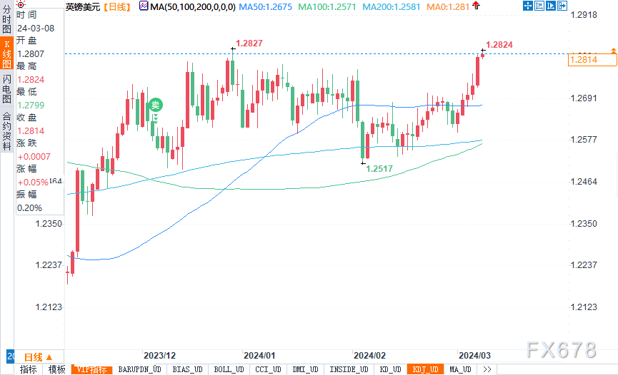 英镑兑美元周五继续走高。如果上涨势头持续下去,多头可能很快就会挑战1.2830附近的主要技术阻力。上破该阻力将打开通往1.3000的大门。
