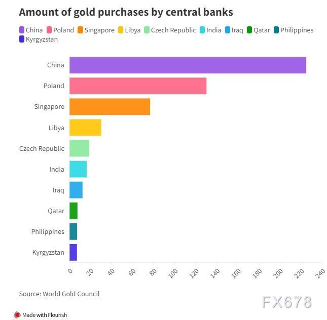 花旗(Citi)北美大宗商品研究主管Aakash Doshi指出:“过去10年,俄罗斯和中国一直是最大的两个买家。然而,近年来央行的购买已经多样化。”