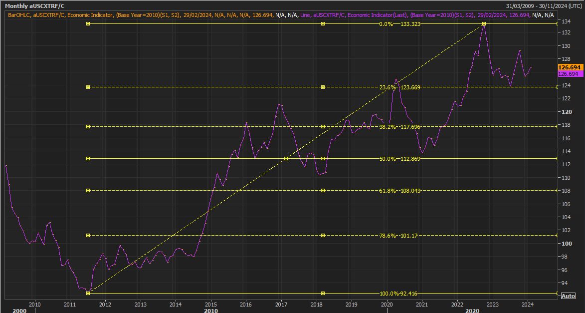 当前的局势非常看涨,它始于一个非常具体的点位--2011至2022年涨势的23.6%回档位。