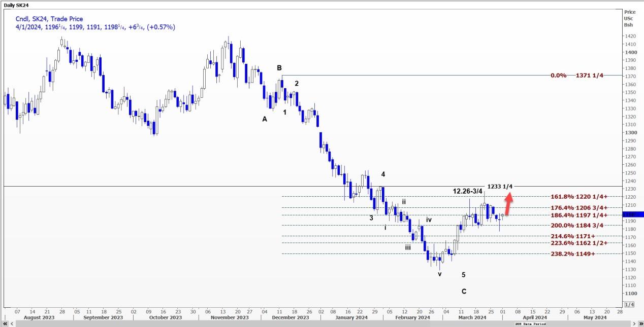 芝加哥期货交易所(CBOT)大豆SK24期货可能测试每蒲式耳12.0050美元的阻力位,突破该阻力位可能打开通往12.0575美元至12.0950美元区间的道路。
