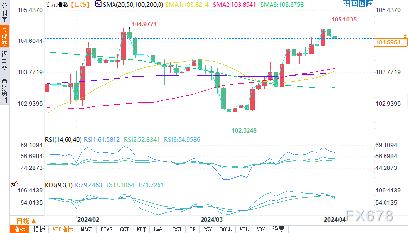 美元指数在104.71美元上方的整体情绪仍然看涨,但跌破这一支撑位可能会引发急剧的抛售趋势,表明市场力量的微妙平衡。