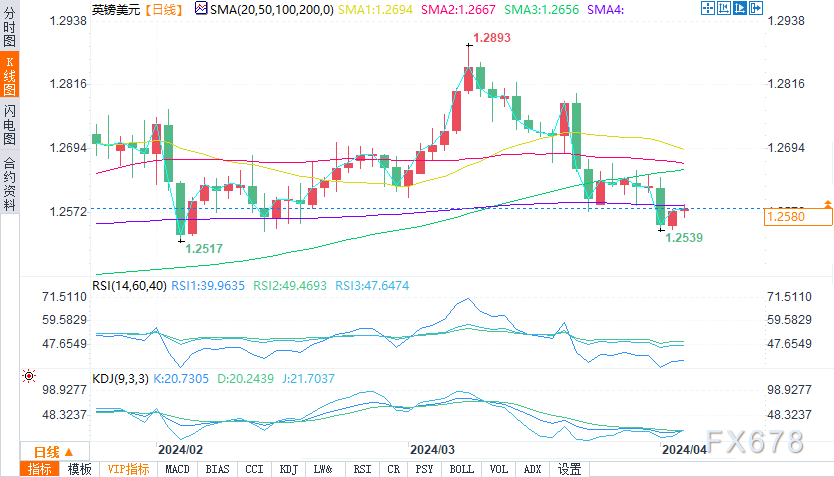 50日均线为1.26182美元,200日均线为1.26668 美元,表明跌破1.25836美元后趋势看跌。