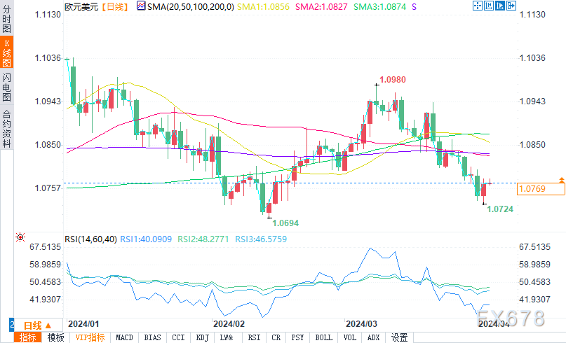周三(4月3日),美元指数震荡后V形反转上升,盘中报104.82,涨幅0.05%。周二,美元指数盘中触及105.1的5个月高点。在美联储政策制定者周二发表温和言论后,美元指数回落。