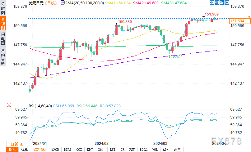 北京时间15:42,欧元/美元报1.0770/71,涨幅0.02%。美元/日元报151.692/705,涨幅0.10%。美元/加元报1.3574/76,涨幅0.07%。