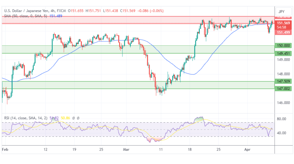 美元/日元仍停留在关键的152.00水平附近。交易员担心,如果美元/日元升至152.00上方,日本央行将进行干预。技术面没有明显变化,但需要密切关注可能的干预行动。