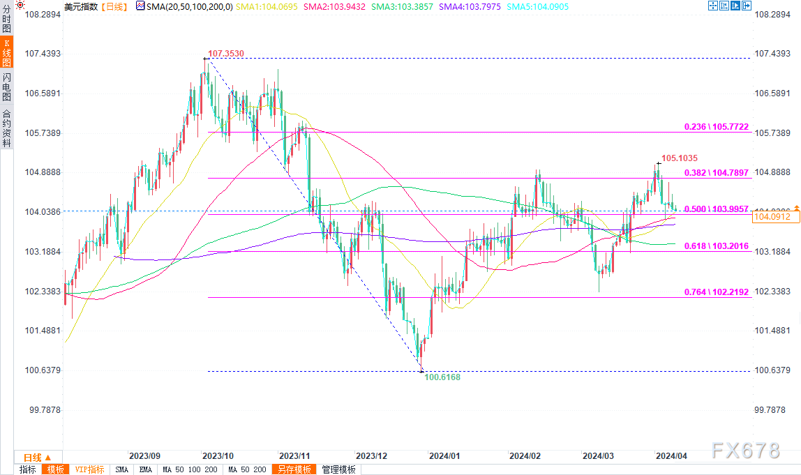 美元指数阻力位出现在104.70,然后是阶段高点105。