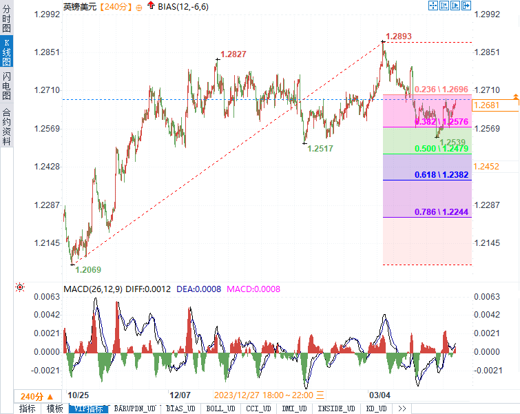 英镑/美元:当前英镑/美元汇率显现轻微看涨情绪,并尝试重回日内看涨趋势。该货币对在升至首个看涨目标1.2700方面无明显阻碍,若突破该水平,则将继续看涨至1.2800区域。该货币对交投在50周期指数移动平均线(EMA)上方,支持看涨预期。若跌破1.2580,则将承受进一步修正性看空压力,下一目标位为1.2480。整体预期趋势为看涨。