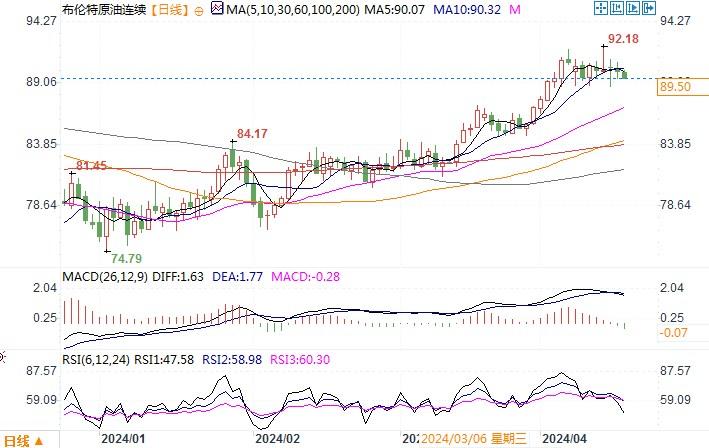 北京时间4月17日13:06 布伦特原油连续 报 89.54 美元/桶