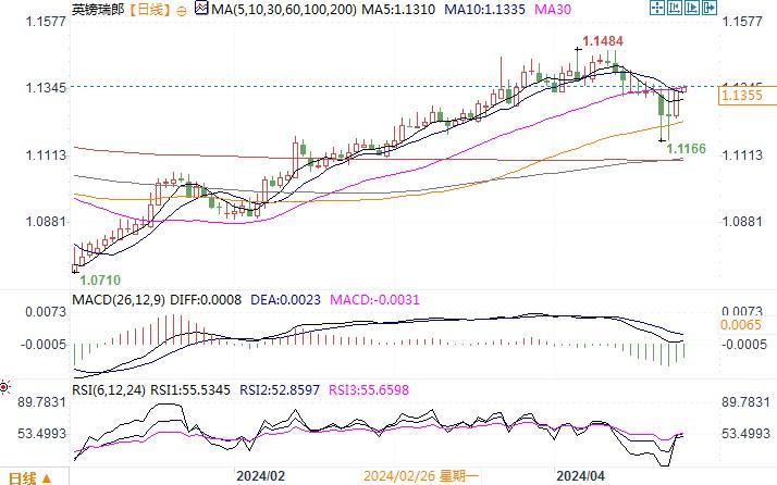 北京时间4月24日11:36 英镑兑瑞郎 报 1.1355/55。