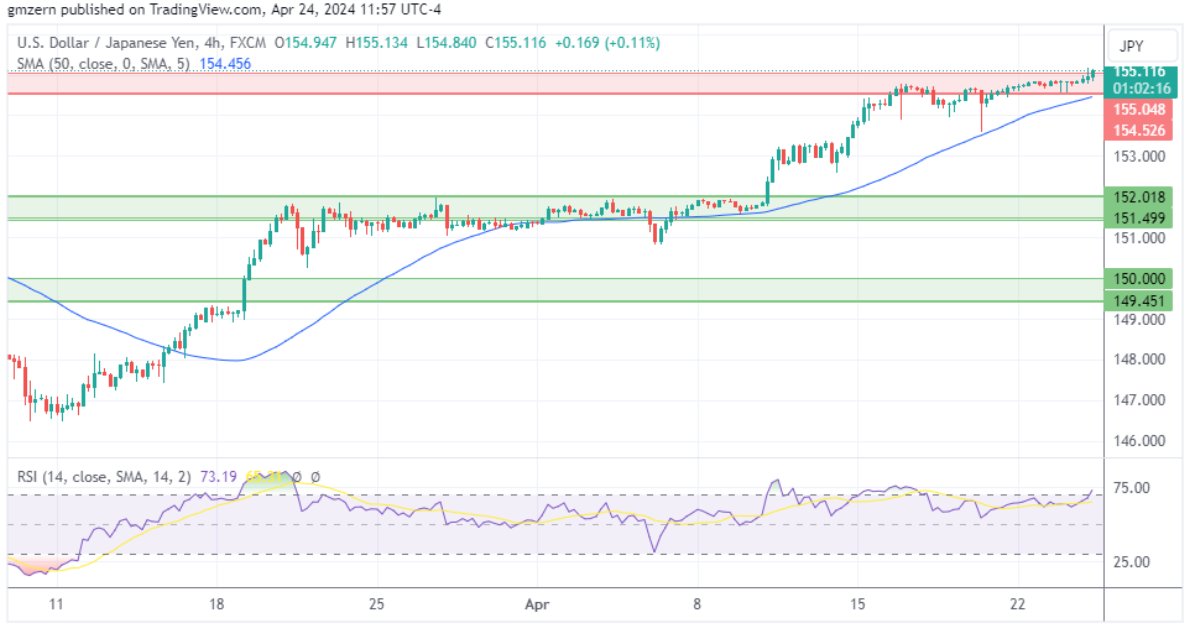 此时,关键问题是日本央行是否准备好守住155.00水平。目前没有央行干预的迹象,但美元/日元走势缓慢,因为多头担心日本央行可能决定干预。基本面来看,日元依然疲软,美国国债收益率上升给日元带来额外压力。