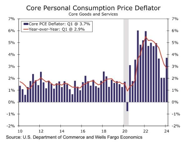 富国银行的高级经济学家Tim Quinlan表示:“服务业的消费者支出并没有放缓,事实上它正在以过去20年来罕见的速度增长。这是个问题,因为核心PCE价格无视利率上升再次回升。”