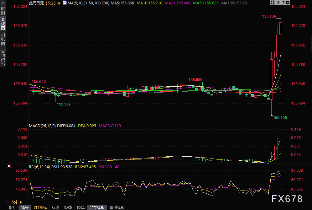 周五(4月26日)亚市,美元/日元短线冲高突破156大关,最高触及156.13,刷新了1990年以来新高。日本决议维持0%利率不变,放弃了购买与之前相同数量债券的措辞。再日元持续贬值之际,日本央行仍没有任何出手干预的迹象,令日元持续走弱。