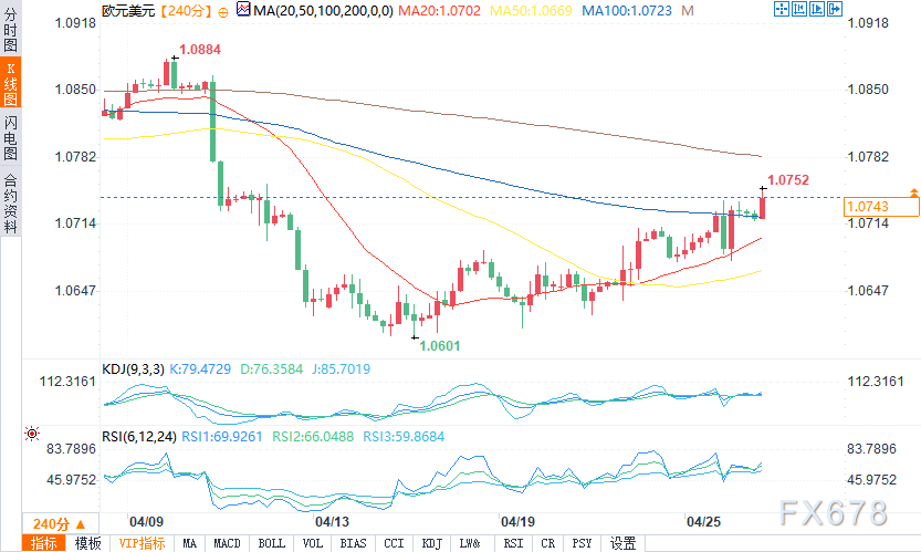 周五(4月26日)欧盘时段,美元指数小幅下跌。欧元/美元盘中报1.0747,涨幅0.17%。英镑/美元盘中报1.2536/37,盘中涨幅0.19%。