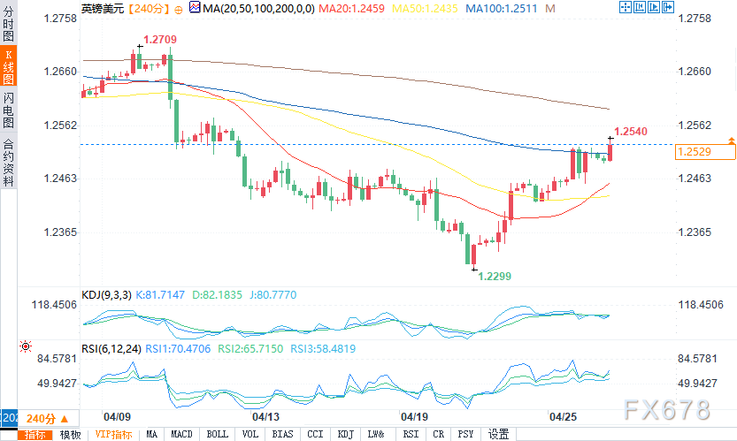 4小时图中,枢轴点位于1.25228美元。即时阻力位在1.25786、1.26401和1.27087,即时支撑位在1.24260,随后是1.23656和1.23023。