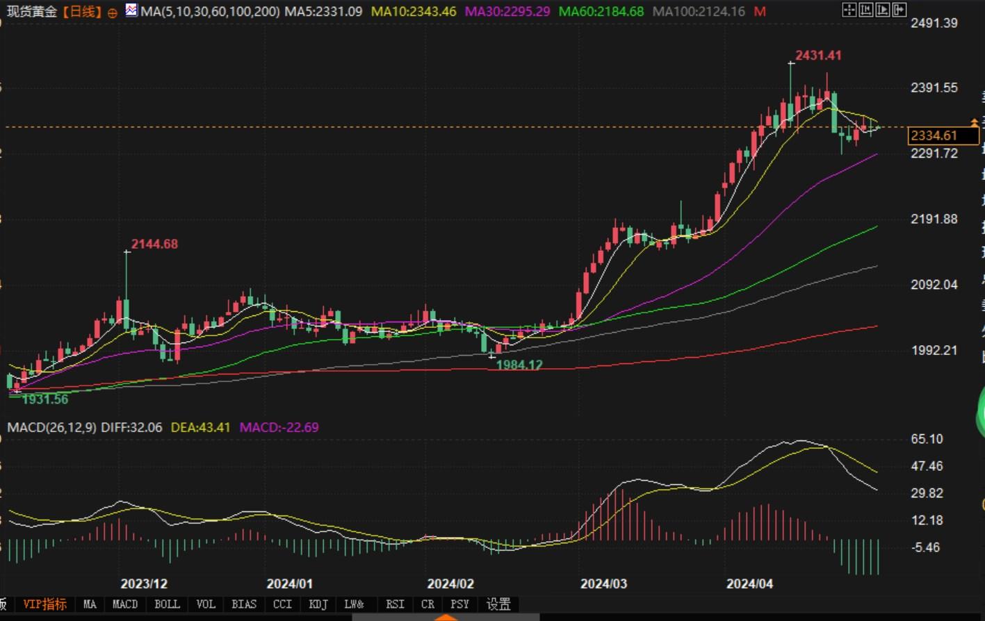 北京时间4月30日9:41,现货黄金报2335.19美元/盎司