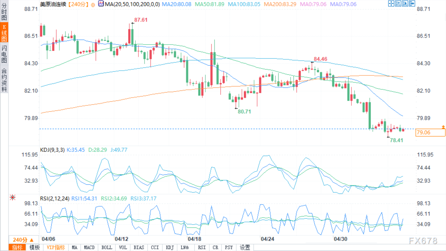 在上行路上,任何反弹都需要上升到心理水平80.00和200均线之上。