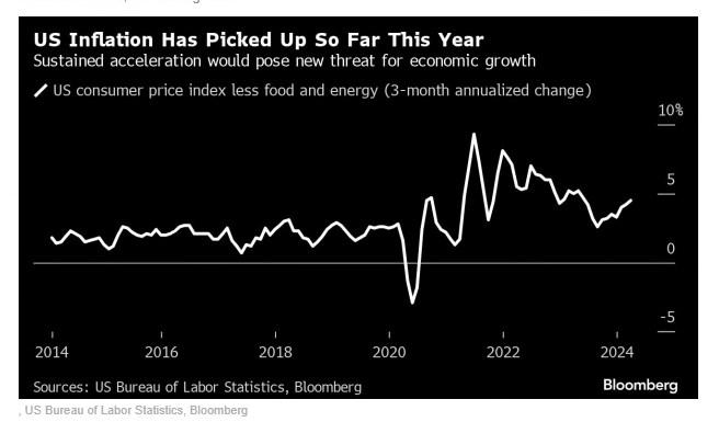 2024年前三个月,不包括食品和能源的消费者价格年化涨幅为4.5%,较第四季度3.3%的年化涨幅有所上升。与此同时,根据彭博经济社(Bloomberg Economics)的估计,经通胀调整后,第一季度零售销售仅增长0.4%,而2023年末的增长率为2.9%。