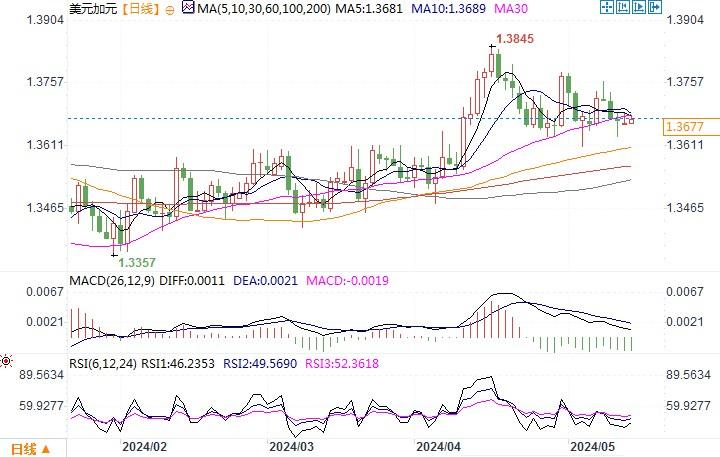北京时间5月14日11:55,美元兑加元报1.3679/81