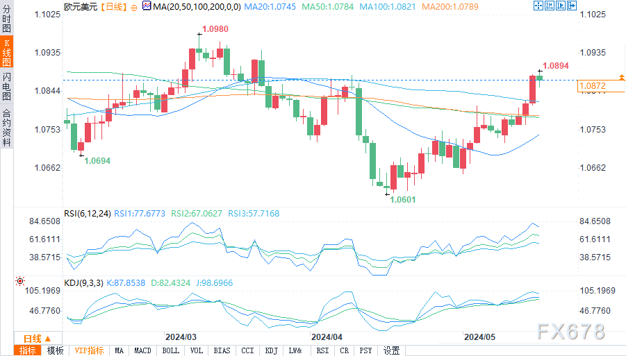 周五(5月17日)北京时间凌晨,欧元/美元在触及1.0854的低点后小幅回升至1.0873附近。英镑/美元在触及1.2642的低点后小幅回升至1.2674附近。