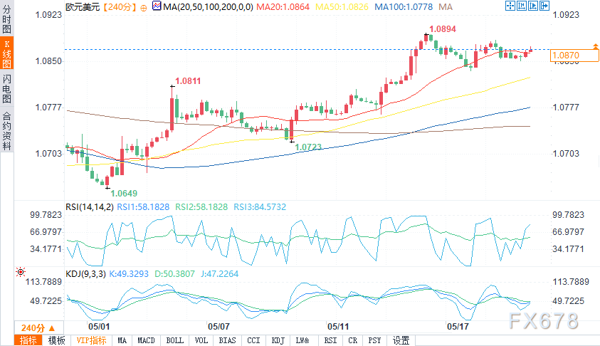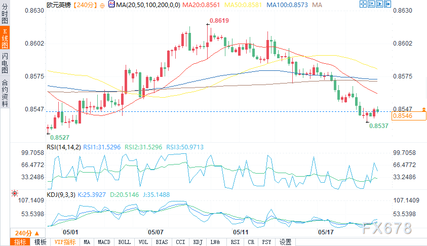 周二(5月21日)欧盘时段,美元指数在亚盘盘中小幅走高至104.7032后逐步小幅下跌,现交投于104.4862美元,跌幅0.13%。欧元/美元报1.0870/71,涨幅0.13%,欧元/英镑报0.8547/49,涨幅0.05%。