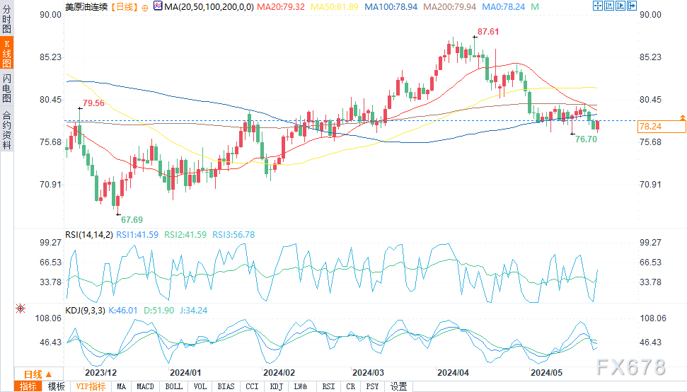 北京时间18:31,WTI原油报78.25美元/桶,涨幅0.88%。