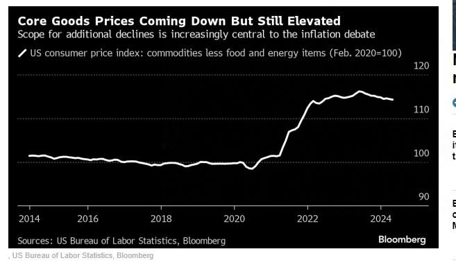 彭博经济认为:“我们觉得,核心商品将在整个夏季继续发挥通缩势头,成为通缩的关键驱动力。但此后,这种力量将开始减弱。为了让通缩继续下去,住房和除住房以外的核心服务必须接力,因为考虑到今年的低基数效应,核心商品的同比通胀可能会在2025年加剧通胀。”