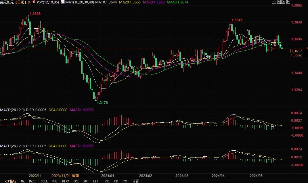 北京时间5月28日11:13,美元兑加元报1.3617/18