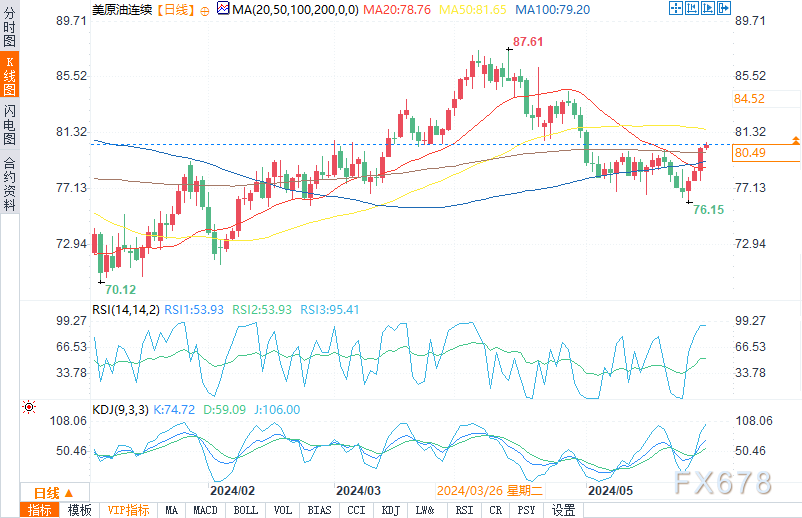 当前短期区间为86.64 - 76.15美元。其50%水平81.40美元是另一个上行目标,也是加速至83.97美元的潜在触发点。