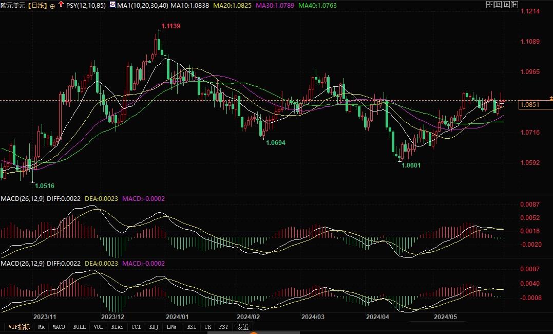 北京时间6月3日10:27,欧元兑美元报1.0851/52