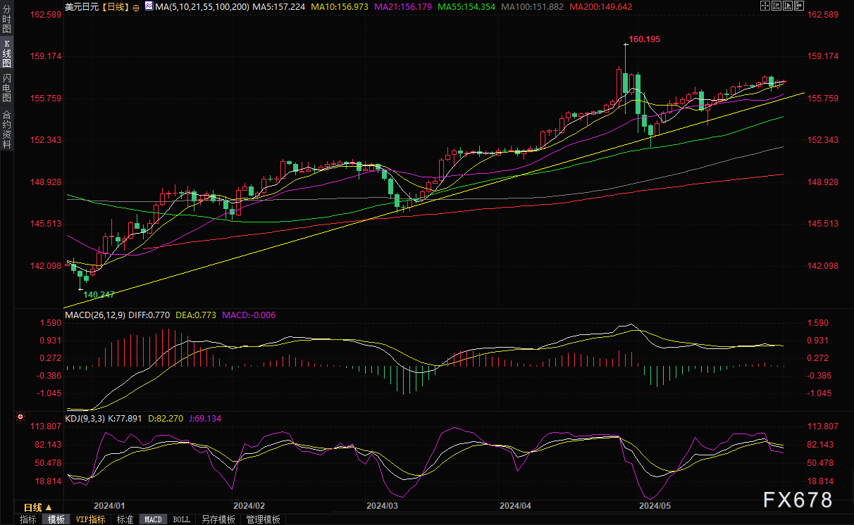 美元/日元如果重返158关口可能预示着将向160关口迈进。此外,突破160关口可能将触及4月29日高点160.209。