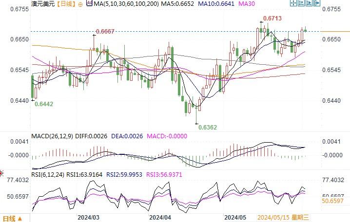 周一(6月3日),澳元/美元继续上涨0.54%,收盘报0.6688。周一美元指数因美国经济数据疲软全面走软,澳元继续受到承托上行。此外,调查显示亚洲各地的工厂活动加速增长:财新/标普全球周一联合公布,5月经季节性调整的中国制造业采购经理人指数(PMI)升至51.7的两年高点,抵消了上周官方调查数据疲软的影响。日本5月份的工厂活动出现一年来的首次扩张,而韩国的工厂活动则以两年来最快的速度增长。这三个国家都是澳洲大宗商品的主要买家,上述亚洲区域国家工业活动的良好变化,也是助益了澳元的上涨。日线图上,澳元/美元连续三个交易日拉阳,汇价继续朝布林带通道上轨线挺进,技术指标勾头上顷,显示澳元多头盘积极,上方若能突破前高0.6714,上方空间将会进一步打开。目前下方在0.6580附近的支撑较为坚实。