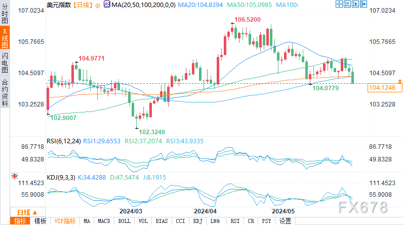 影响市场预期的关键数据点是美联储4月份核心PCE(个人消费支出)价格指数的涨幅低于预期,这是美联储的关键通胀指标。再加上美国个人支出和收入增长的下降,表明通胀压力有所缓解。因此,5月份美元指数兑主要货币下跌约1.5%。最近几周,美元指数表现出令人惊讶的平静。在5月初跌至104点后,它部分恢复,同时保持2024年的上升趋势。
