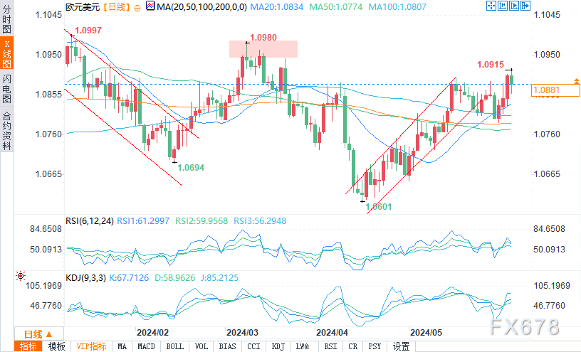 欧元兑美元下行面临许多挑战。首先,美元几乎没有表现出看涨的动力;其次,市场已经消化了欧洲央行降息25个基点的预期,但该货币对仍在走高。然而,回到1.0800和通道支撑仍然是空头的关键区域。