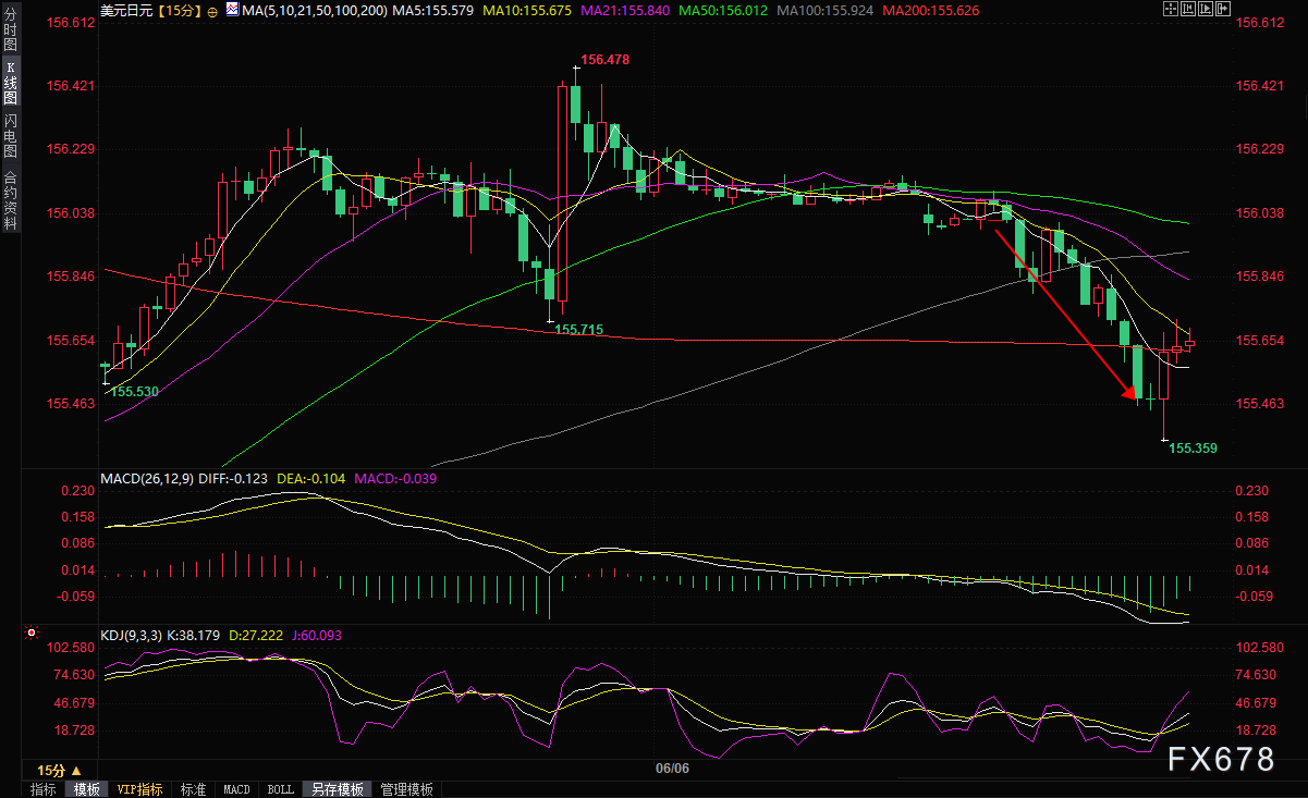 周四(6月6日)亚市,美元/日元震荡走弱,最低跌至155.36,目前交投于155.70附近,日元贬值路径似乎迎来拐点。日本央行暗示,日元贬值可能影响利率走势,为可能加息的黑天鹅事件铺垫基础。分析指出,交易员需警惕美元/日元跌破关键均线,恐跌向151.68支撑位。