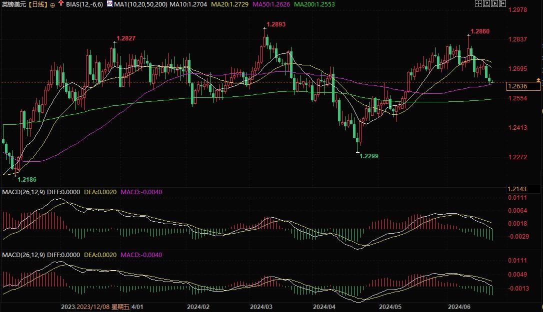 北京时间6月24日9:15,英镑兑美元报1.2633/34