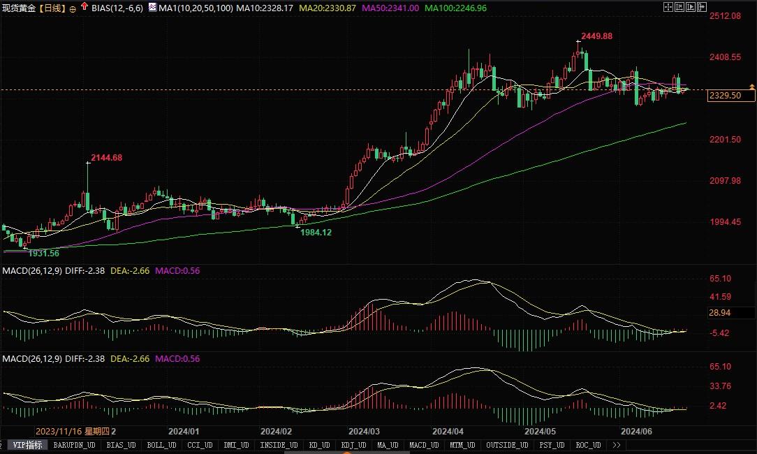 北京时间6月25日8:55,现货黄金报2330.21美元/盎司