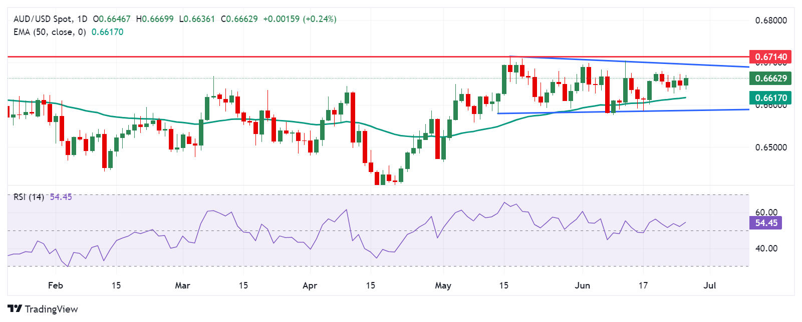 FXStreet分析师Akhtar Faruqui表示,周三澳元/美元汇率在0.6660左右。日线图分析显示,澳元/美元对呈中性偏向,因为它在矩形形态内盘整。14天相对强弱指数(RSI)略高于50水平。进一步的走势可能表明方向性趋势明显。