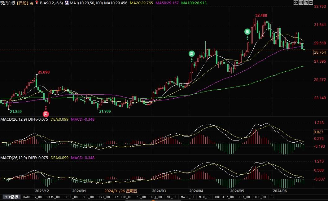 北京时间6月26日10:01,现货白银报28.79美元/盎司