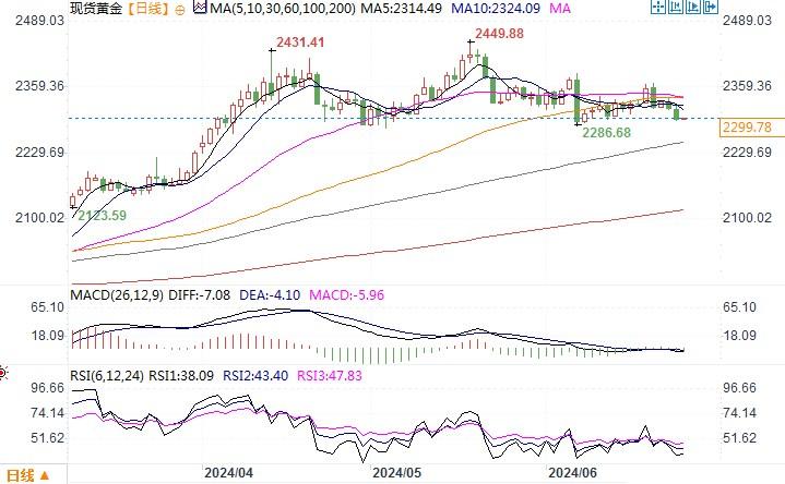 北京时间6月27日11:11 现货黄金 报 2299.53 美元/盎司