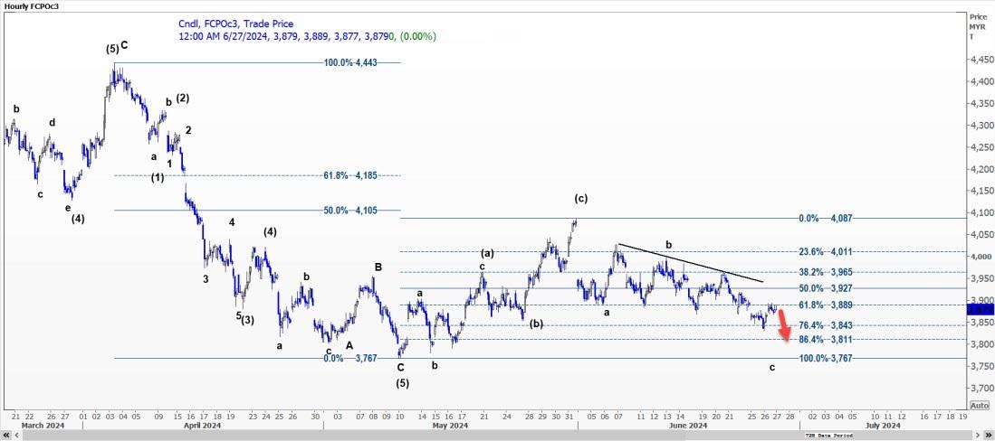 技术分析师王涛根据回撤分析指出,棕榈油可能重新测试每吨3,843林吉特的支撑位。这一支撑位是5月10日低点3,767林吉特的76.4%上行趋势回撤位。若市场能够突破3,889林吉特的关键阻力位,则可能进一步上涨至3,927-3,965林吉特区间。