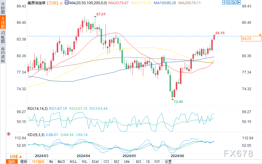 北京时间19:55,WTI原油报84.04美元每桶,涨幅0.66%。布伦特原油报87.23美元每桶,涨幅0.63%。