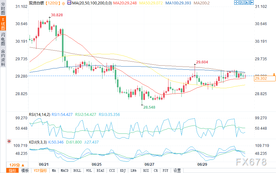 周二(7月2日)欧盘时段,银价维持下行趋势,交投于29.32美元附近,盘中低点为29.212美元。这种下跌可归因于美元走强。尽管对美联储9月降息的押注上升,美元依然走强。