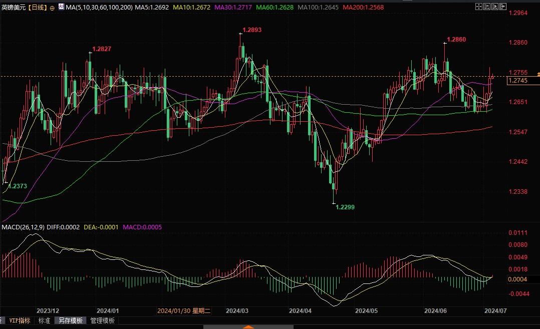 英镑自6月27日开始持续走强。周四亚洲交易时段,英镑兑美元在1.2750附近交易,这可能归因于周三美国公布的疲软数据。